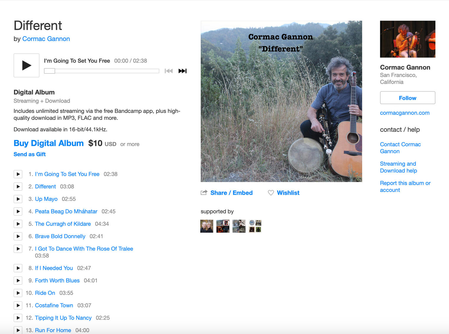 The Gas Men can still be heard playing concerts, sessions and at house parties around The San Francisco Bay Area and beyond. Cormac has played bodhrán on albums by recordings artists, Catherine John, Kyle Alden, Lucia Comnes, Sarah Franklin and Colin McGrath, he also plays at sessions around the Bay Area and with the band, The Cross Keys. Cormac makes Irish drums (Bodhrán's) as a hobby.